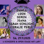Wir haben unsere erste Stage für Newcomerinnen* am 10.10.2015, den Miezenabend, veranstaltet. Daraus wurde die MOSAIK FLINTA* music stage. Diesen Geburtstag wollen wir feiern mit einer Jubiläumsedition: 10 Jahre Music-Stage für aufstrebende Artists am Samstag, den 29.11.2025!
